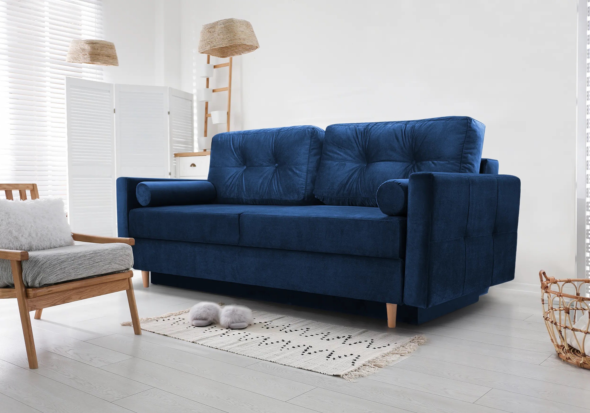 Pohovka PASSO nabízí pohodlné sezení, možnost rozložení na lůžko (153 × 189 cm) a praktický úložný prostor. Výplň z PUR pěny a pružin zajišťuje komfort při každodenním používání. Díky pevnému rámu je vhodná i do domácností, kde je kladen důraz na funkčnost a odolnost.