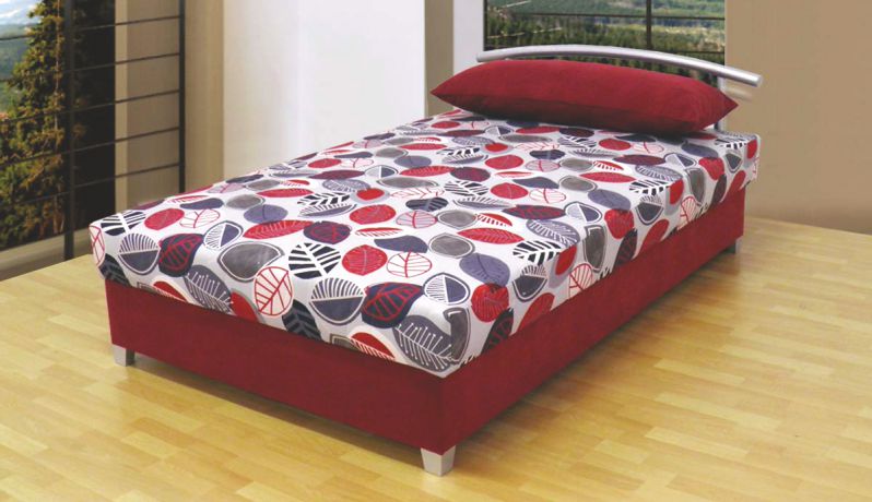 Oblíbená postel s úložným prostorem a otevíráním od nohou. Je doplněná PUR pěnovou matrací. Polohovací rošt má dvě řady lamel.