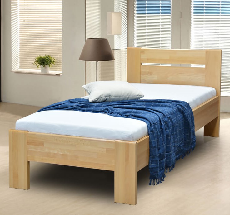 Dřevěná postel SAMO z masivu o šířce 90 cm. Dodáváno bez matrace, roštu a úložného prostoru. Nosnost 120 kg.