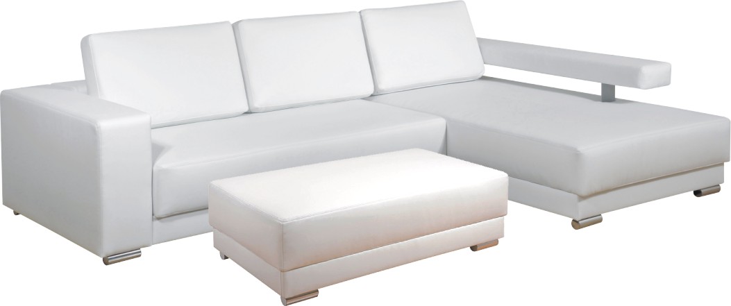Moderní sedací souprava. S funkcí lůžka – po přidání taburetu vznikne ložná plocha 239 × 112 centimetrů. Nosné části z masivního dřeva, sedací části z kvalitní PUR pěny. Ilustrační foto.