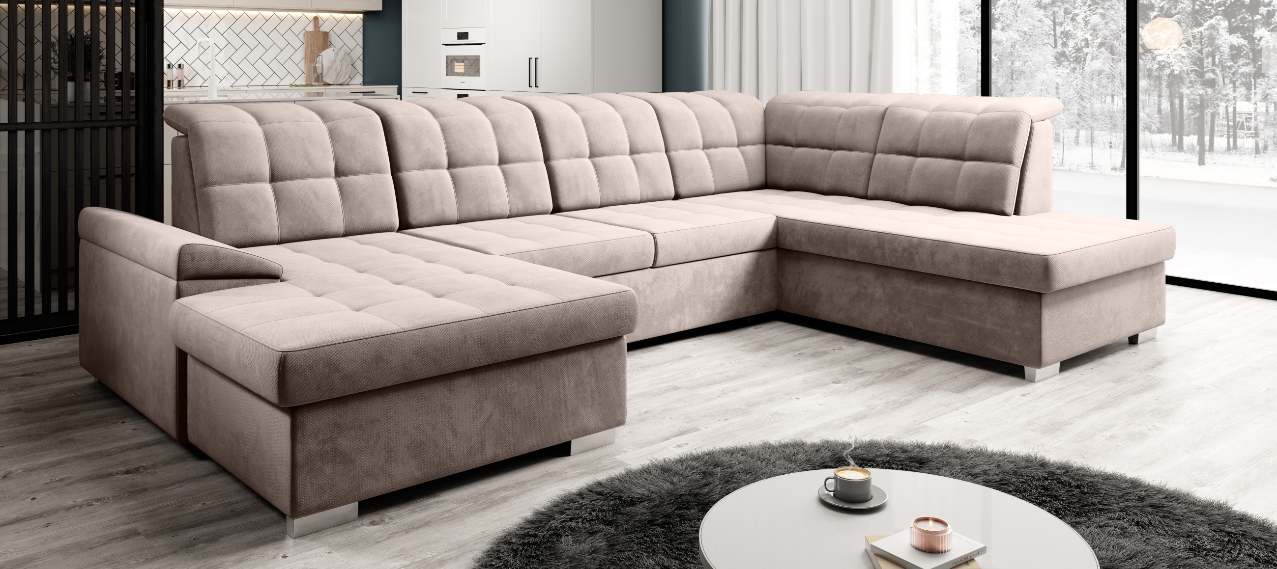 Představujeme vám naši nejnovější sedací soupravu OLIVER „U“ – dokonalý kousek nábytku pro váš obývací pokoj! Tento rozkládací klenot nabízí nejen pohodlné sezení, ale také úložný prostor a polohovatelné opěrky hlavy pro maximální komfort.